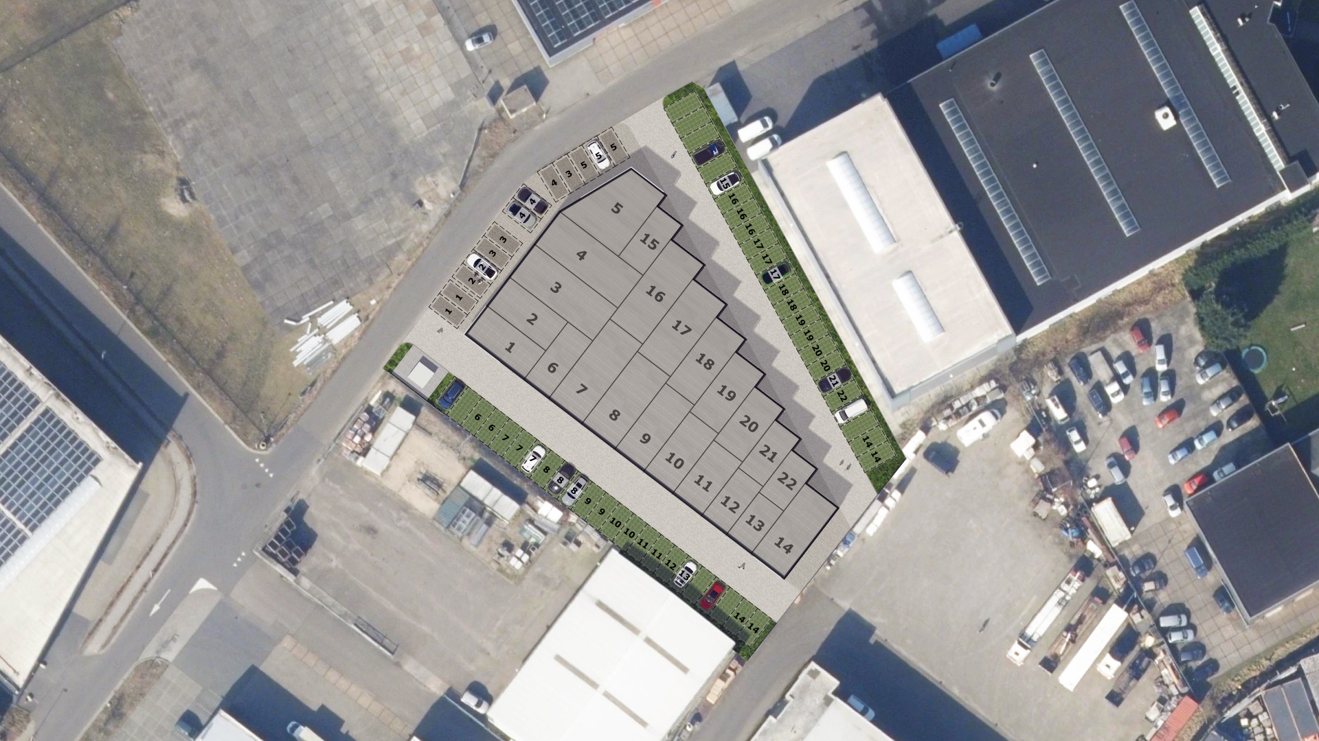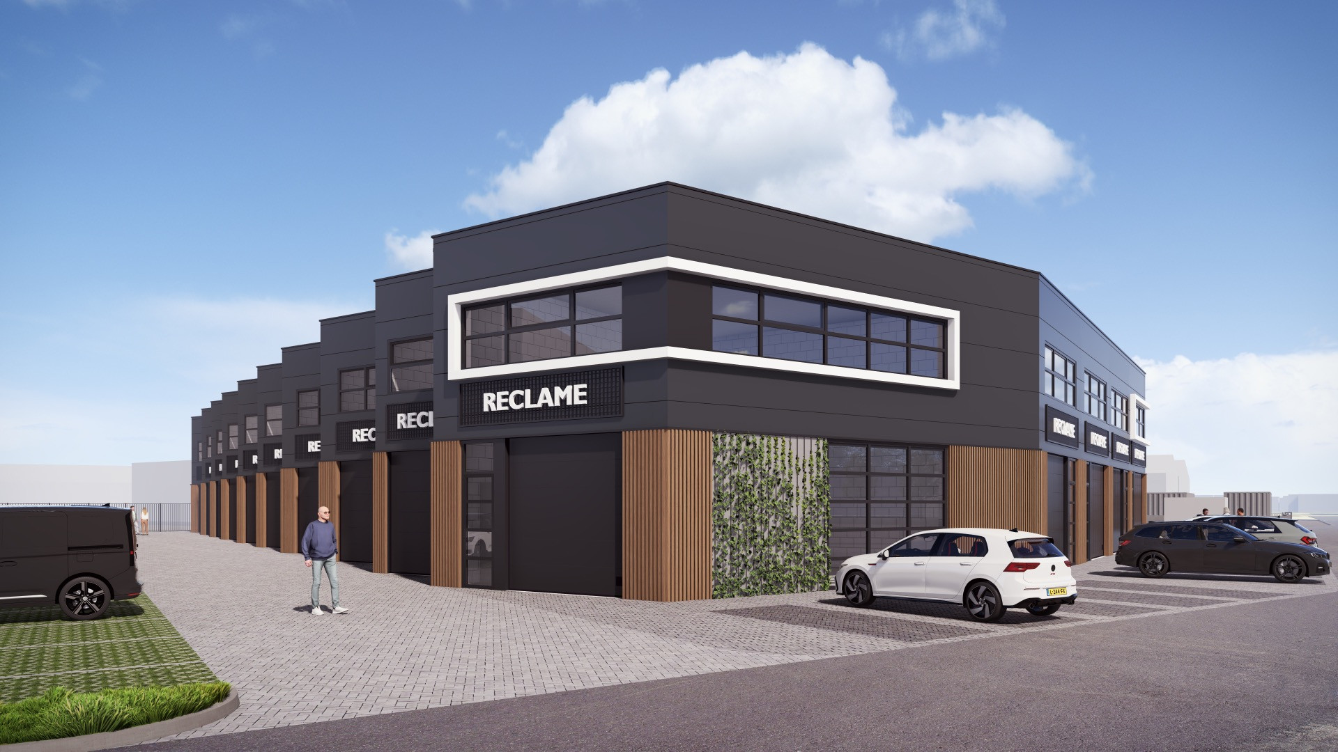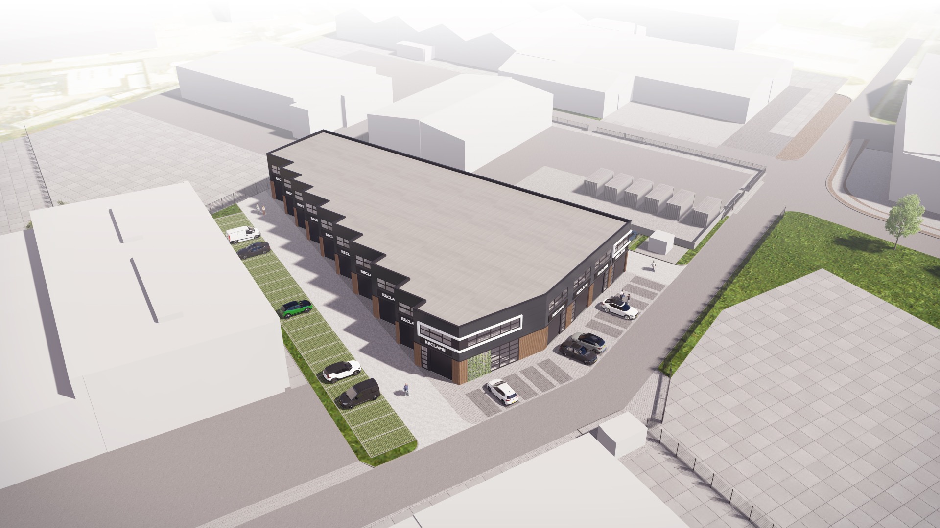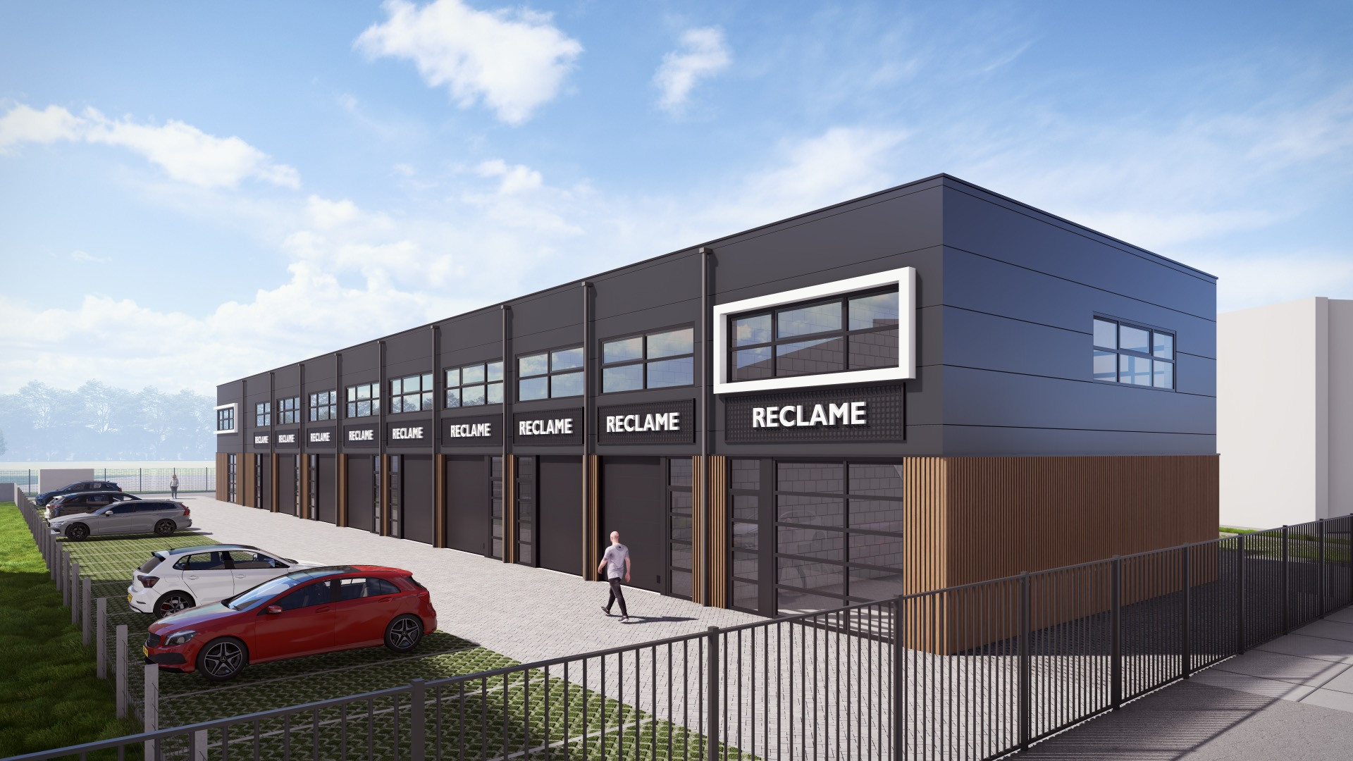 De getoonde impressie is van een ander project van Bedrijvenparken Nederland. De bedrijfsunits in Noordwijkerhout zullen in een vergelijkbare stijl worden gerealiseerd. De definitieve impressies zullen binnenkort online staan.