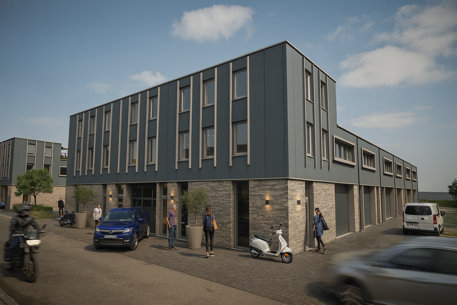 De bedrijfsunits in De Paveri zijn functioneel en flexibel ontworpen, geschikt voor diverse zakelijke toepassingen. De units worden verkocht als appartementsrechten, waarbij kopers automatisch lid worden van de Vereniging van Eigenaren (VvE). De omgevingsvergunning is reeds in aanvraag.